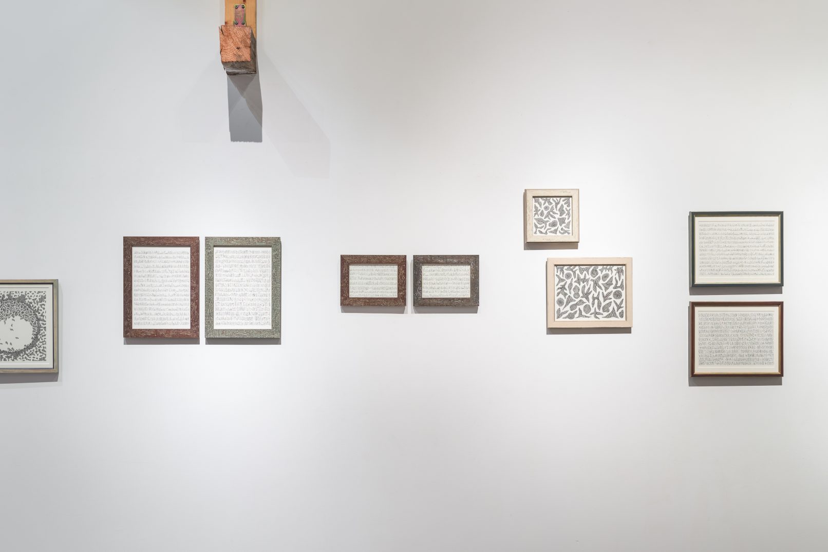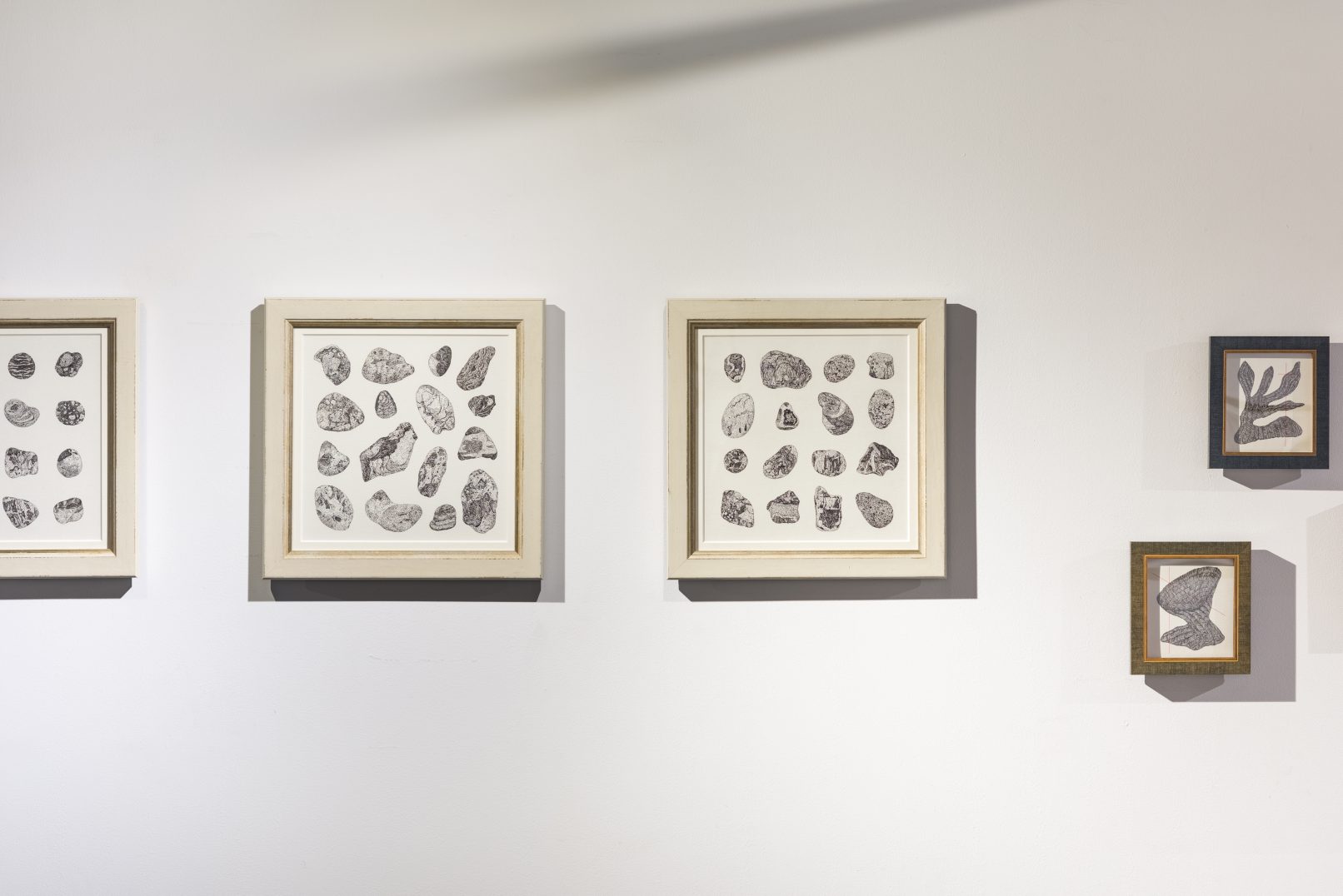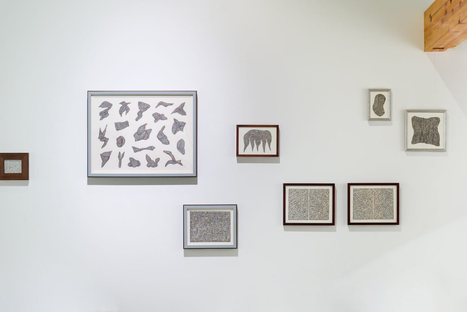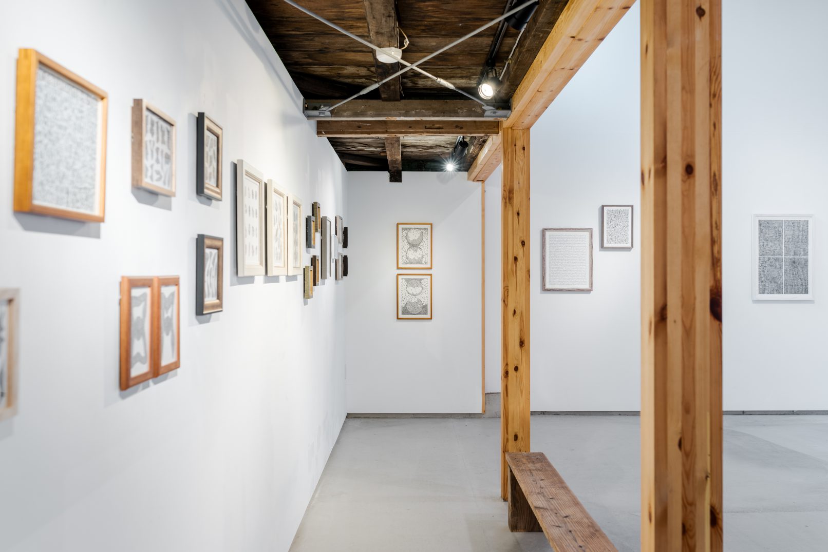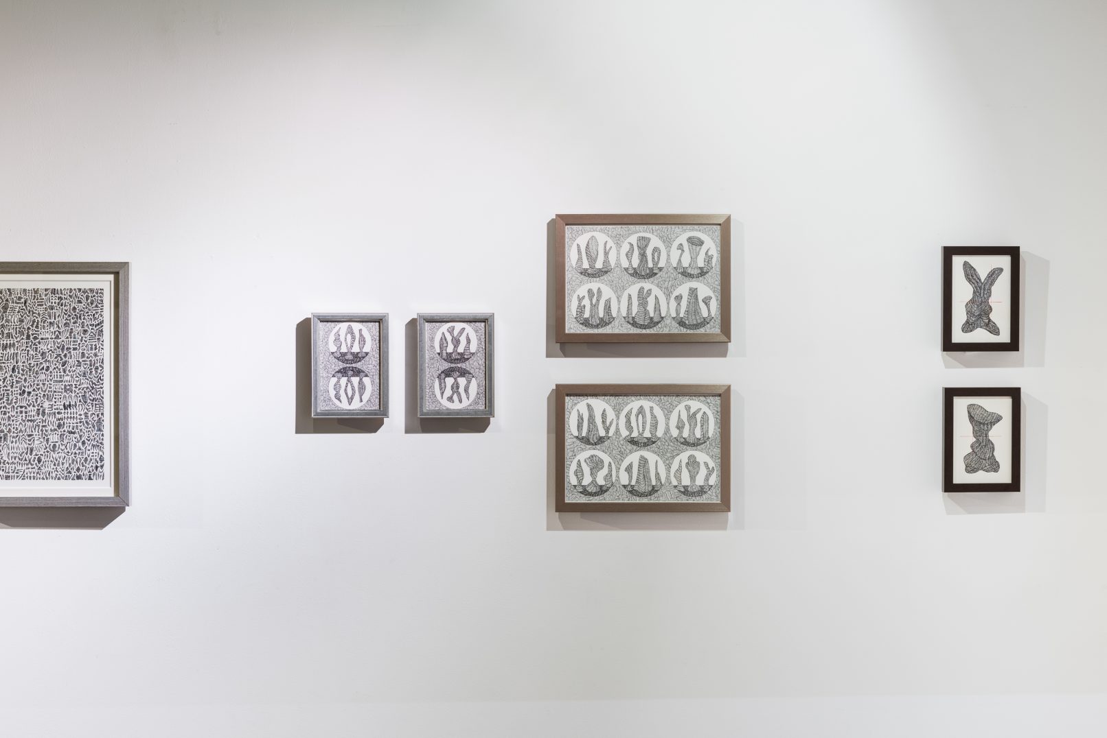 描かれたドローイングは、自身がコレクションする額縁に入れることで完成し、ペインティングまでの予感を描き溜めている。