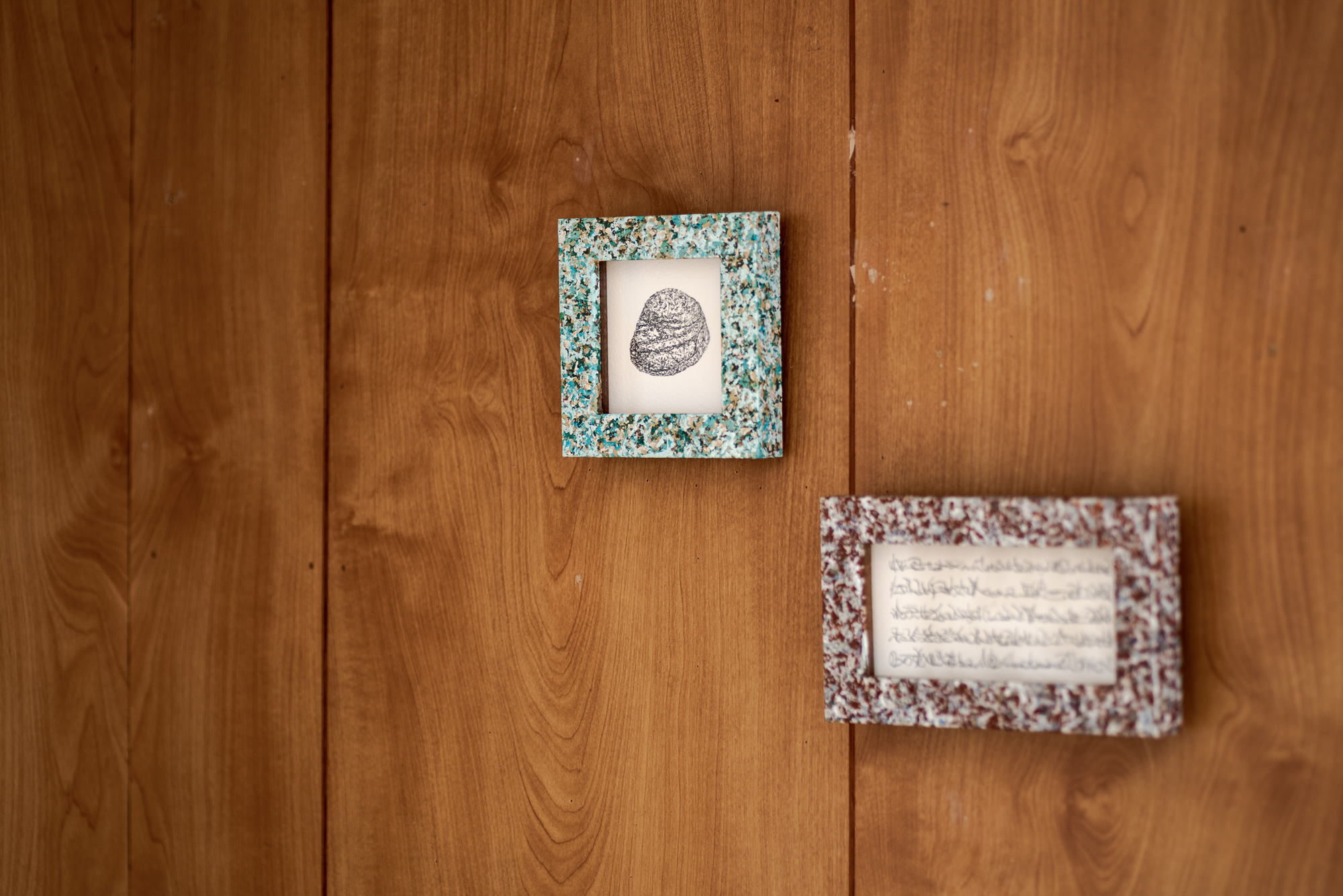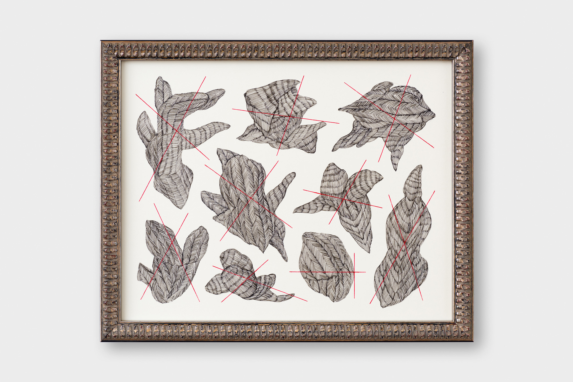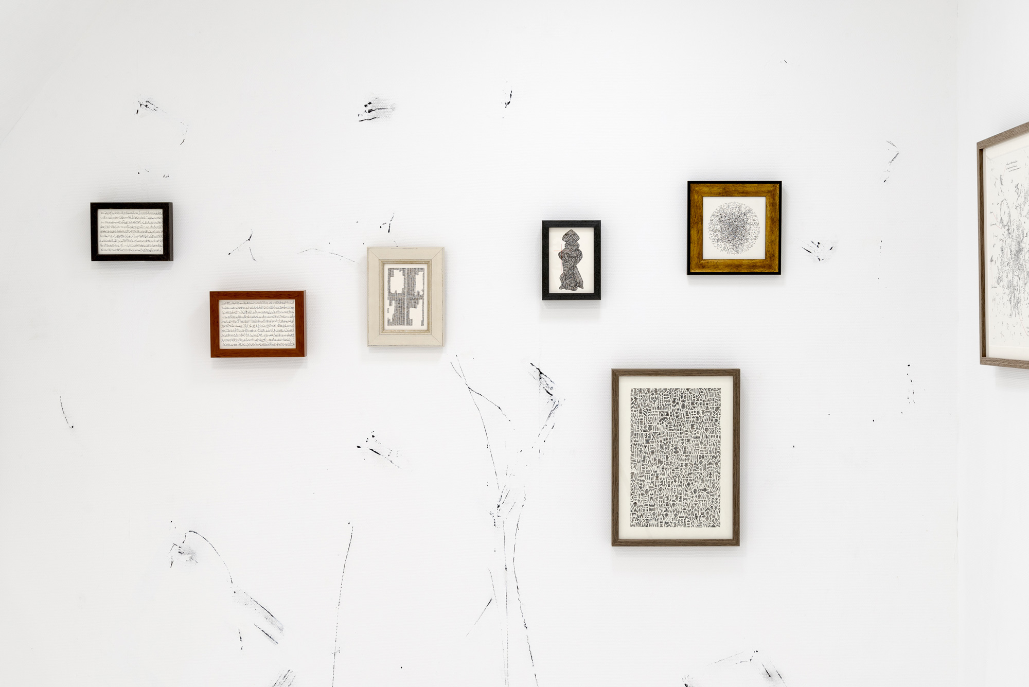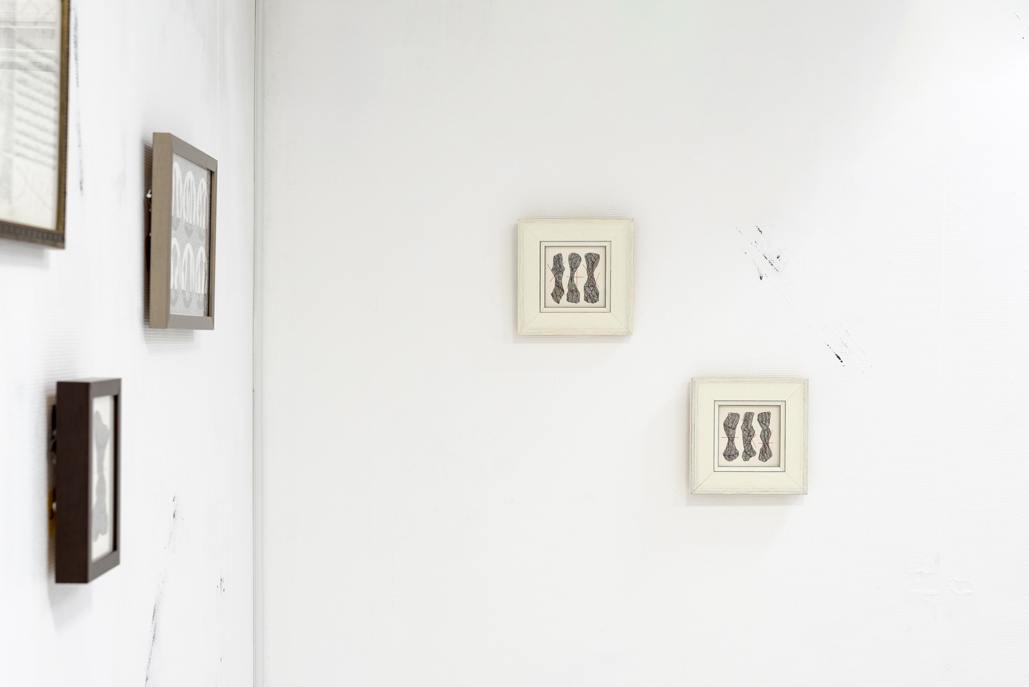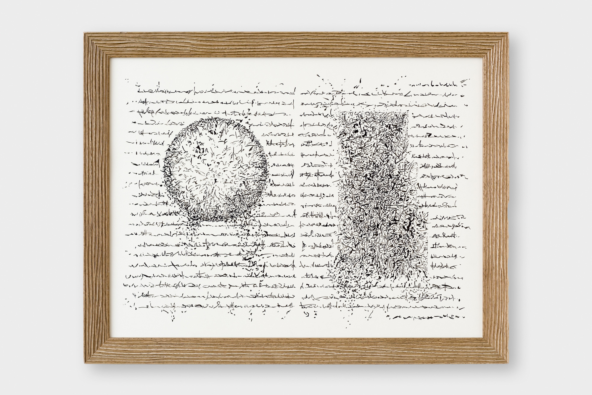 木の根を抜いて眺めたり、チューリップの花びらを解いてみたり、海岸に行って石を拾ったり。日常の隙間で収集した形や色を、いつも同じ画材で記録する。強い風の日の音、どこからか香った匂い、今日会ったあの人のこと…消え忘れていく些細な記憶は、紙の上で踊るような線となり、名のない形となり残ってくれる。日々、暗くぼんやりとした脳中の壁を削るように描くことは、私がまだ知らない言語を生み出す行為でもある。(野原万里絵)